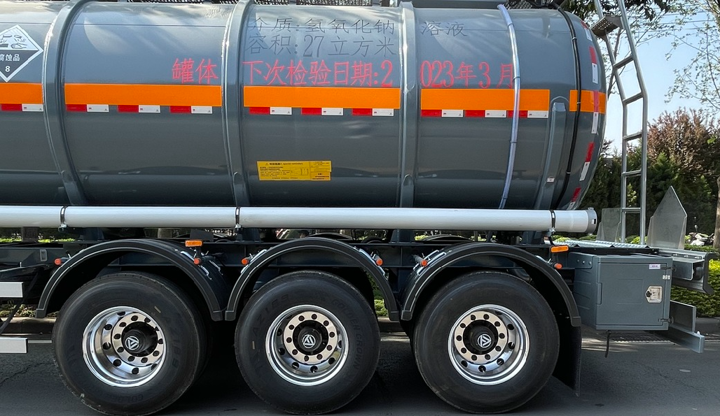 該產品采用27方的通倉輕量化設計,使用高強度耐腐蝕的304L不銹鋼和鋁合金輪罩,結實耐用壽命長;在安全方面,采用新型六爪不銹鋼快開防爆人孔及鋁合金升降護欄,還配備了知名品牌的碟剎空懸及底閥報警系統,保證了使用和運行過程中的穩定性及安全性。從內到外,全副武裝,如同“鋼鐵俠”一般,安全感十足!