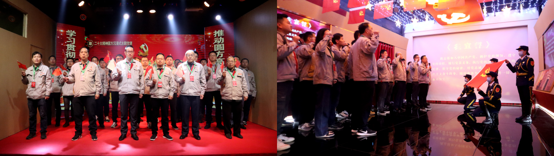在工作人員的講解下,大家認真聆聽圓方集團“六課教育”、“四五”創(chuàng)新工作模式、“五新”非公黨建工作方法,以及其他非公黨建新體系、新機制,深刻領悟到“黨組織就是靠山”、“黨建也是生產(chǎn)力”。在二十大精神沉浸式主題展館,大家走進長廊廳,通過欣賞舞蹈、唱紅歌、誦讀二十大精神、現(xiàn)場答題、重溫入黨誓詞等互動環(huán)節(jié),感受到一堂“網(wǎng)紅薛書記”帶來的生動黨課。